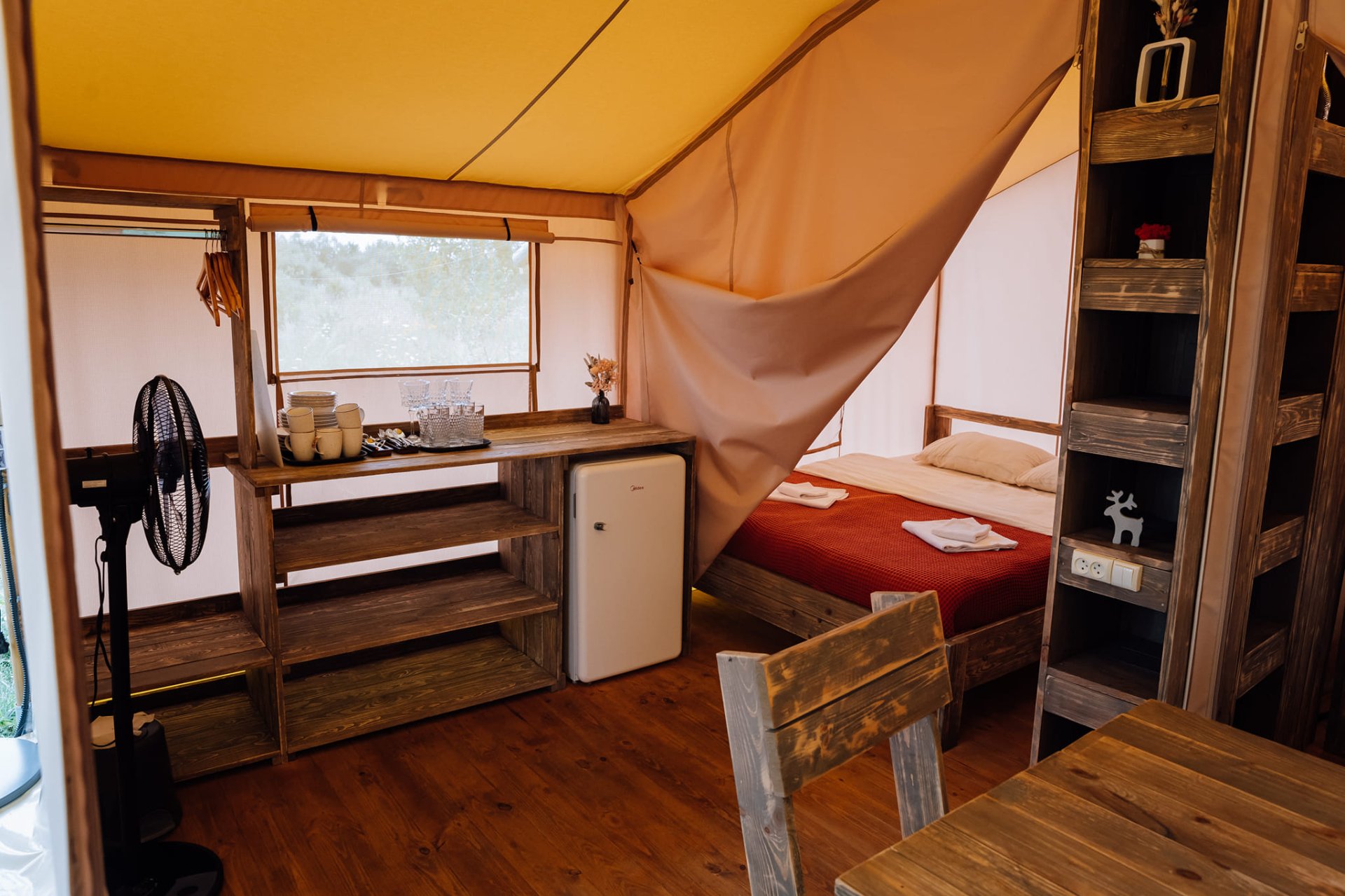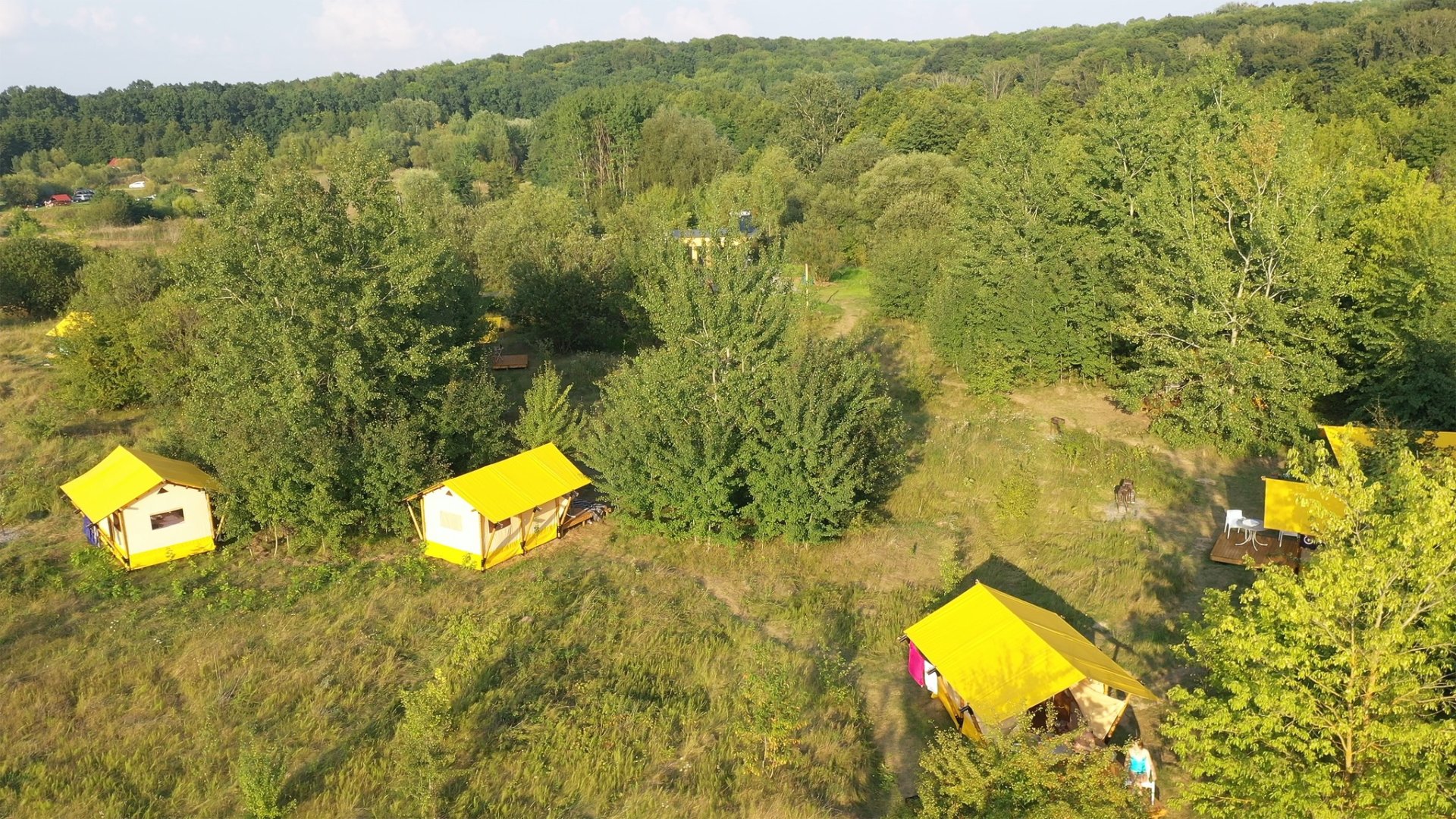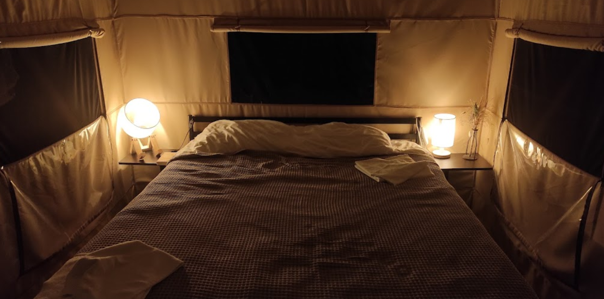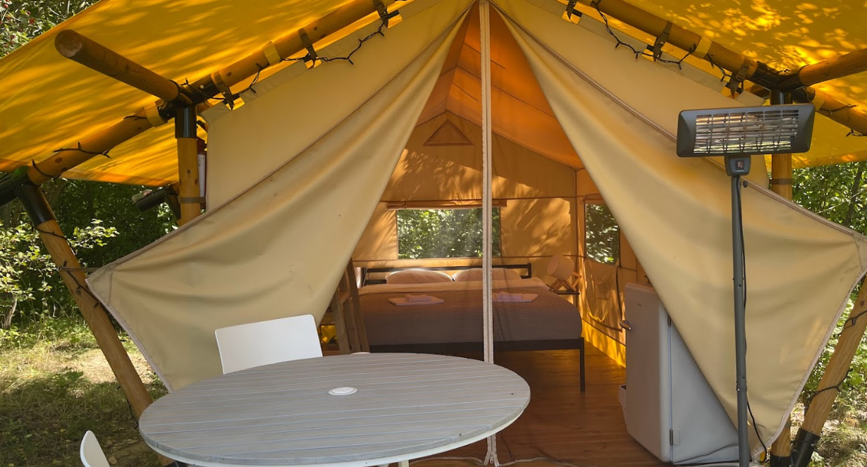 Короткий опис. Глемпінг "Голубе озеро" пропонує унікальний відпочинок на природі, де комфорт поєднується з красою дикої природи. У наметах вас чекає зручне двоспальне ліжко, тепла ковдра, постільна білизна, холодильник та садові меблі, щоб насолодитися вечорами біля лісу і ставка. На території облаштовано всі необхідні зручності: душ, туалети, зона для миття посуду, а також окремий трейлер з повним набором комфорту. Це ідеальне місце для тих, хто шукає затишок та спокій серед природи.
